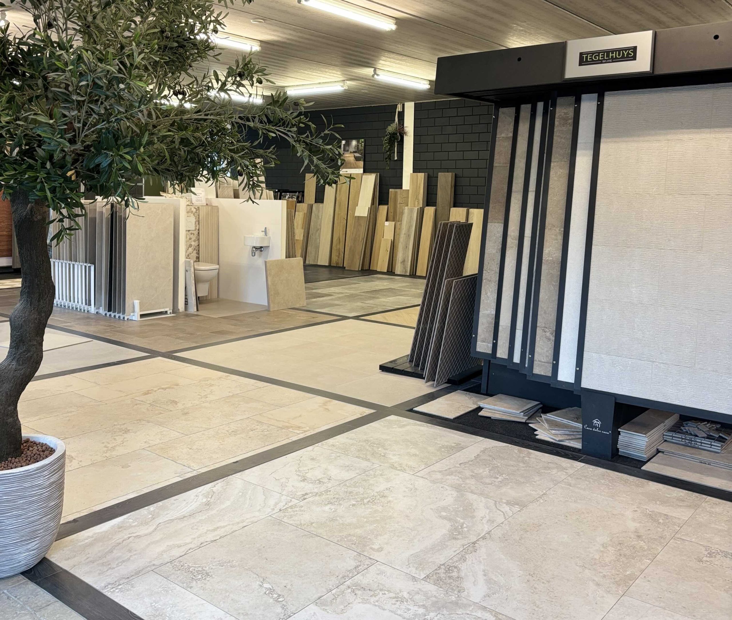 Bij Tegelhuys Wijhe vindt u uw eigen stijlvolle en unieke vloer. Duurzaam, rustig of juist hotel chique. Voor woonboerderij, tussenwoning of welnesscentrum. Warm onder je voeten en praktisch in onderhoud. Een vloer die van elke ruimte een fijne plek maakt en waar u na 10 jaar nog steeds verliefd op bent! Bij ons heeft u alles onder een dak: interieuradvies, vloer- en wandtegels, vloerverwarming met warmtepomp.